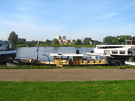 De laatste vrijdag komen we via Arnhem op de Neder-Rijn. Bij Rhenen zien we een walletje en achter een binnenvaartschip is ruimte zat.
