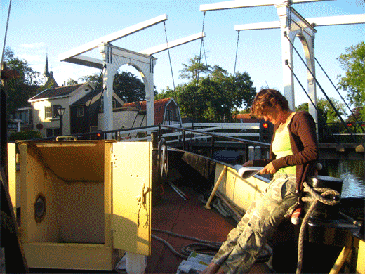 De laatste zaterdag varen we de Vecht op, en we overnachten voor een brug. Twee bewoners zijn het daar niet mee eens. Wij laten de stemming daar niet door bederven.